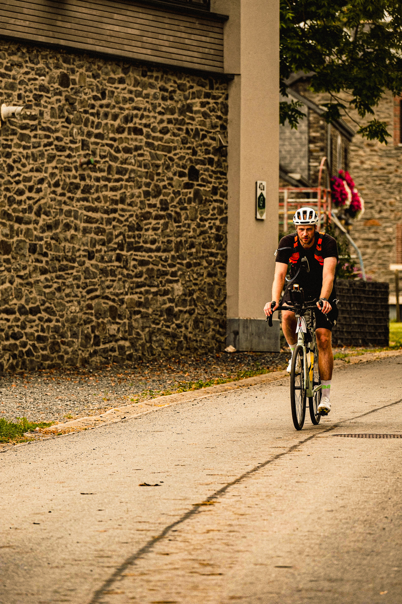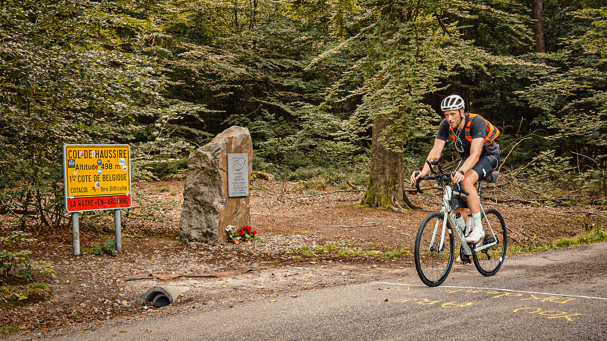 Het werd weer flou, totdat ik in Coo aankwam bij Le Coffee Ride. Hier kwam ik ook al langs tijdens mijn ultrarace van The Classics Story, ongeveer op hetzelfde tijdstip, maar nu was het zo'n 20 °C warmer. Ik wist welke heuvel me te wachten stond en keek er niet echt naar uit. De Thier de Coo is 2,5 km lang, met een gemiddeld stijgingspercentage van 8,6% (valt mee toch?), maar de eerste anderhalve kilometer gaat het van 10% naar 16% en er lijkt geen einde aan te komen. Toen ik de top bereikte, kon ik beginnen aan de afdaling en de eerste borden van de bebouwde kom voorspelden niet veel goeds: "Stavelot". Fuck! De Stockeu komt eraan. Gewoon afdalen en dan rustig omhoogrijden, dacht ik. Maar de routebouwer vond het leuk om er nog een heuvel tussen te plannen, waardoor ik behoorlijk kapot aan deze kanjer van een heuvel moest beginnen. Ondertussen was het al ochtend en na een minuut of vijf fietsen op de Stockeu, passeerde ik de benen van Eddy Merckx. Het deed me niet beter fietsen, jammer...