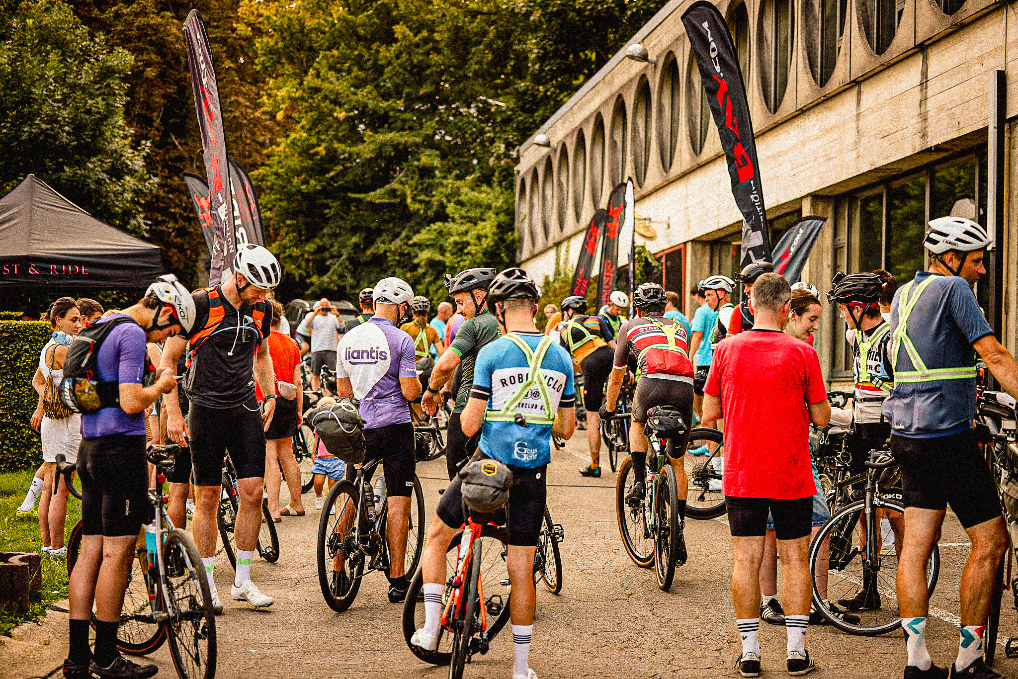 We startten om 20.00 uur 's avonds, wat betekende dat het een uurtje later al begon te schemeren. De dagen worden in augustus immers alweer wat korter. Onder luide, epische muziek begon het deelnemersveld zich te verzamelen aan de start. In vergelijking met de 8 starters van mijn eerste ultra dit jaar (@classicsstory), was dit behoorlijk indrukwekkend. Ik schat dat we met meer dan 100 ultraracers waren, zowel voor de 1000 km als voor de 500 km.